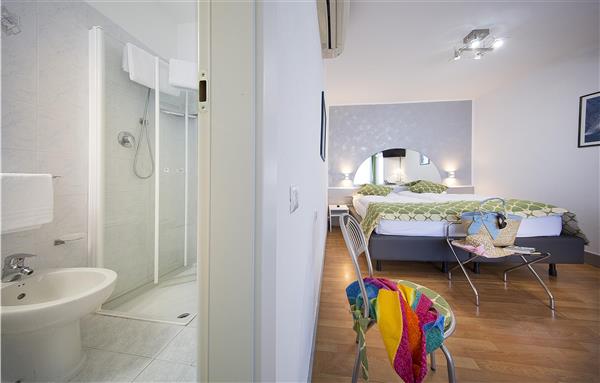 Etage -3 direkt am Strand gelegen mit kleiner Terrasse, ideal für zwei Personen.