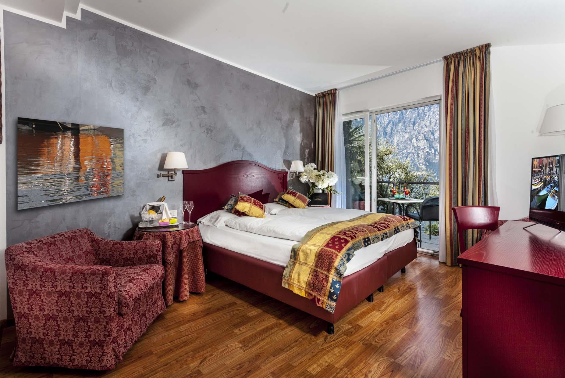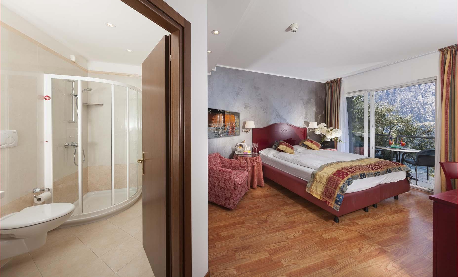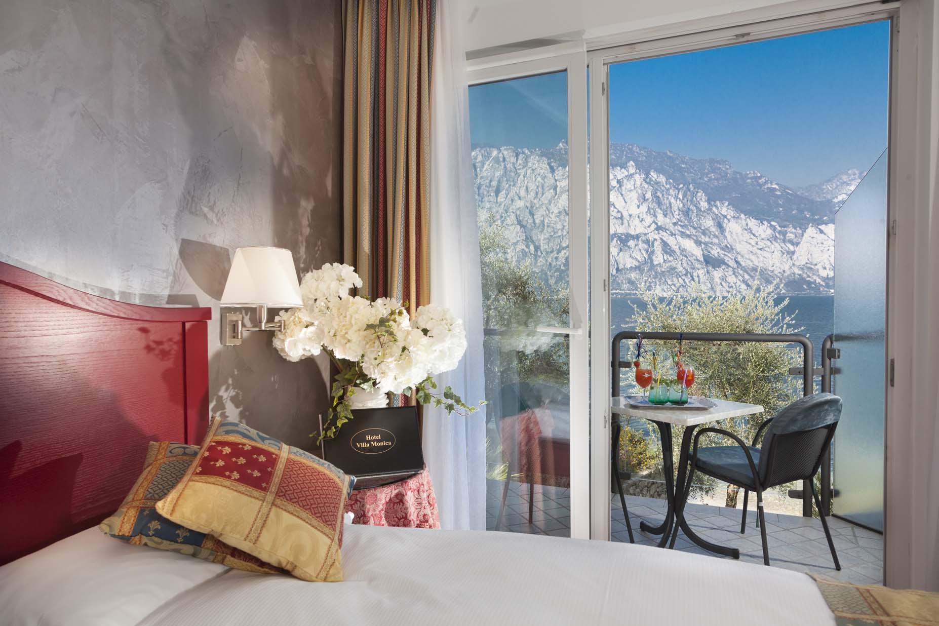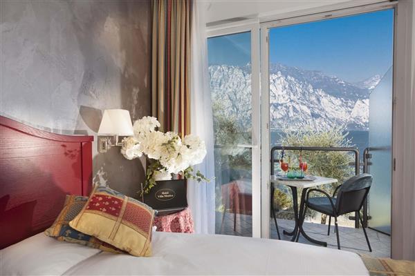Etage -1 oder -2. Helles Zimmer mit Balkon und Seeblick.