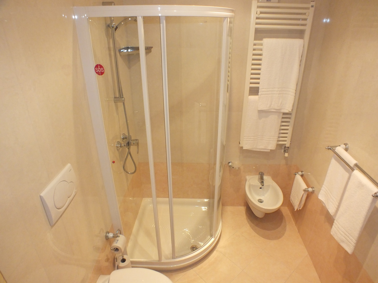 - Bad mit Dusche, WC, Bidet, Fön
